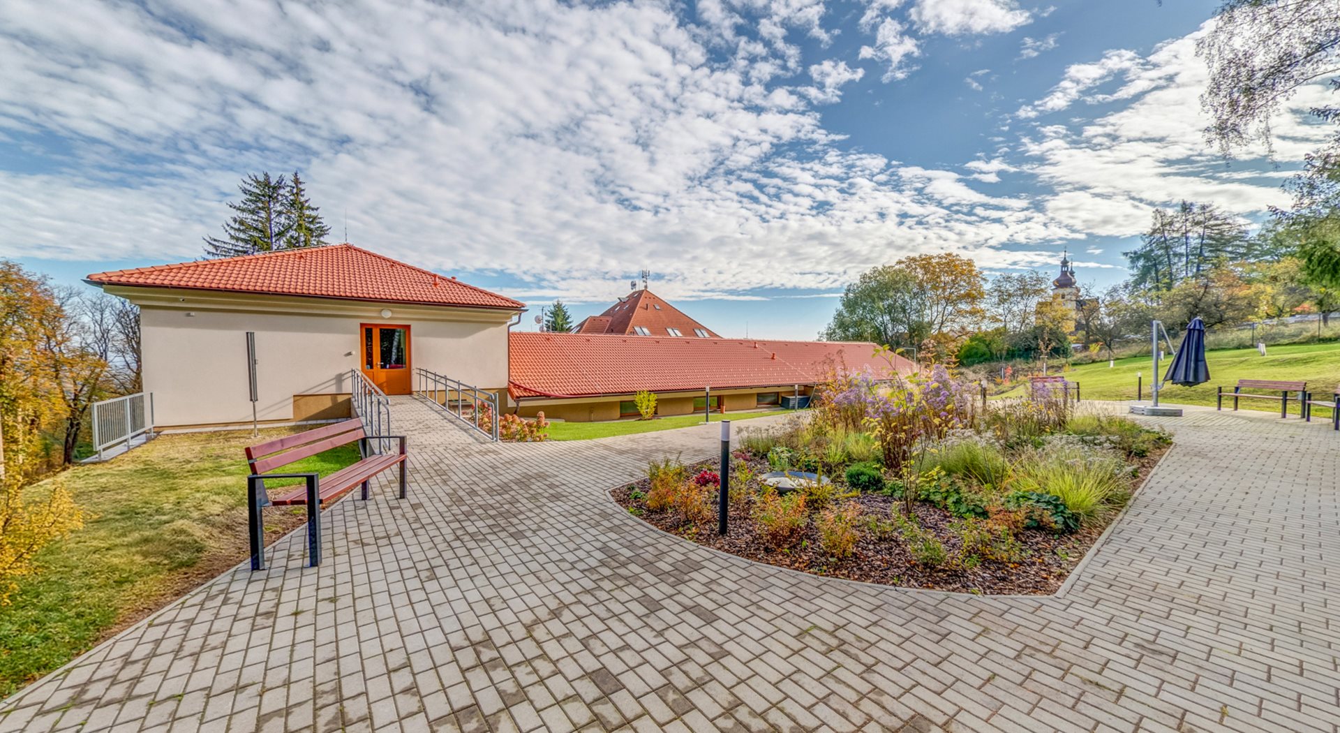K domovu náleží upravená zahrada, která je ideálním místem pro procházky, odpočinek na lavičkách či setkávání s ostatními klienty. Zahrada je osázena květinami a keři, které zpříjemňují každodenní pobyt venku, a nabízí také záhonky, o které se senioři mohou starat.